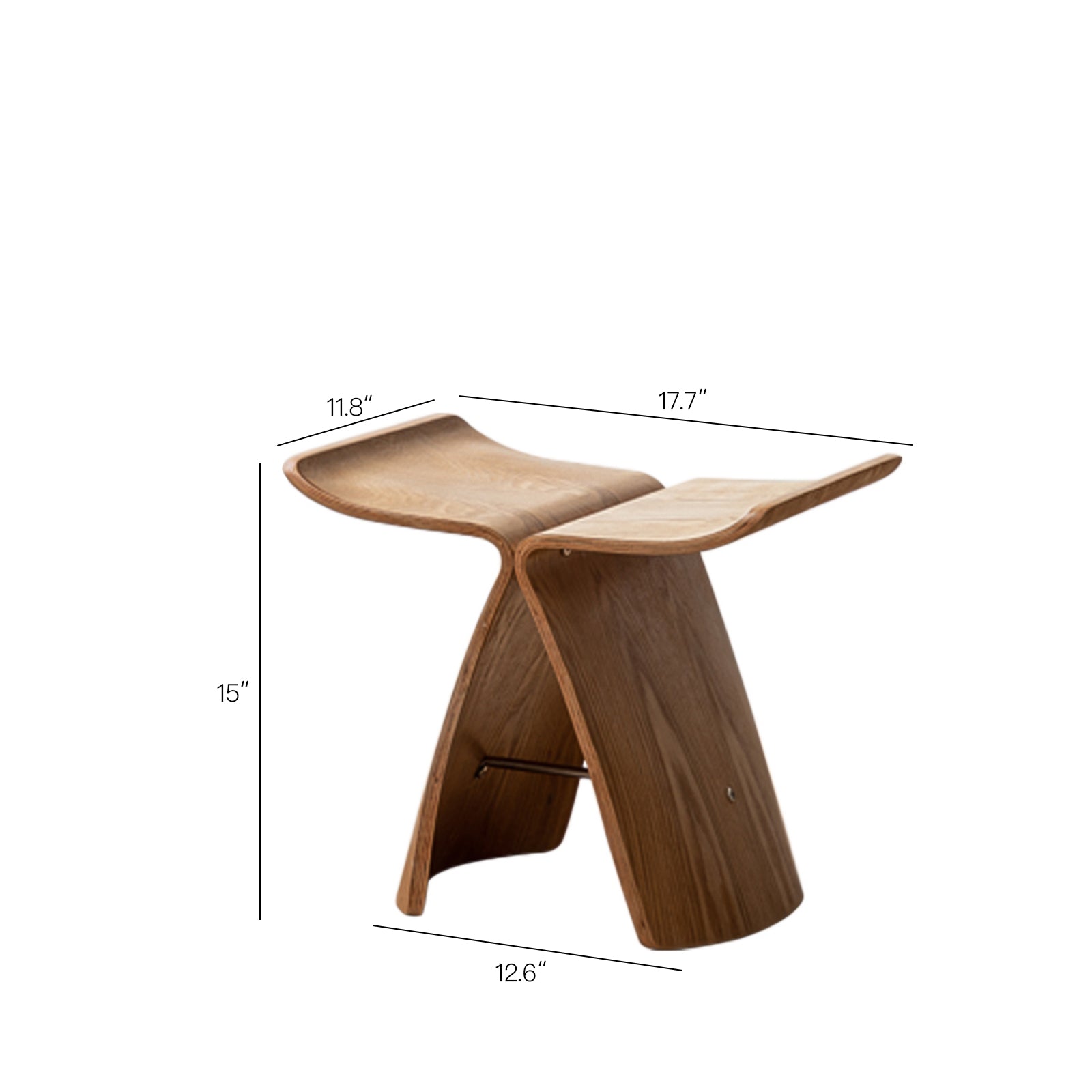 Inspired by timeless craftsmanship, this butterfly stool is elegantly sculpted from white ash wood. Its curved plywood design, secured with brass screws and stainless steel reinforcements, ensures both durability and stability. The unique heat-bending process creates a graceful silhouette, resembling butterfly wings in motion. A perfect blend of artistry and function, it adds a refined touch to any space.