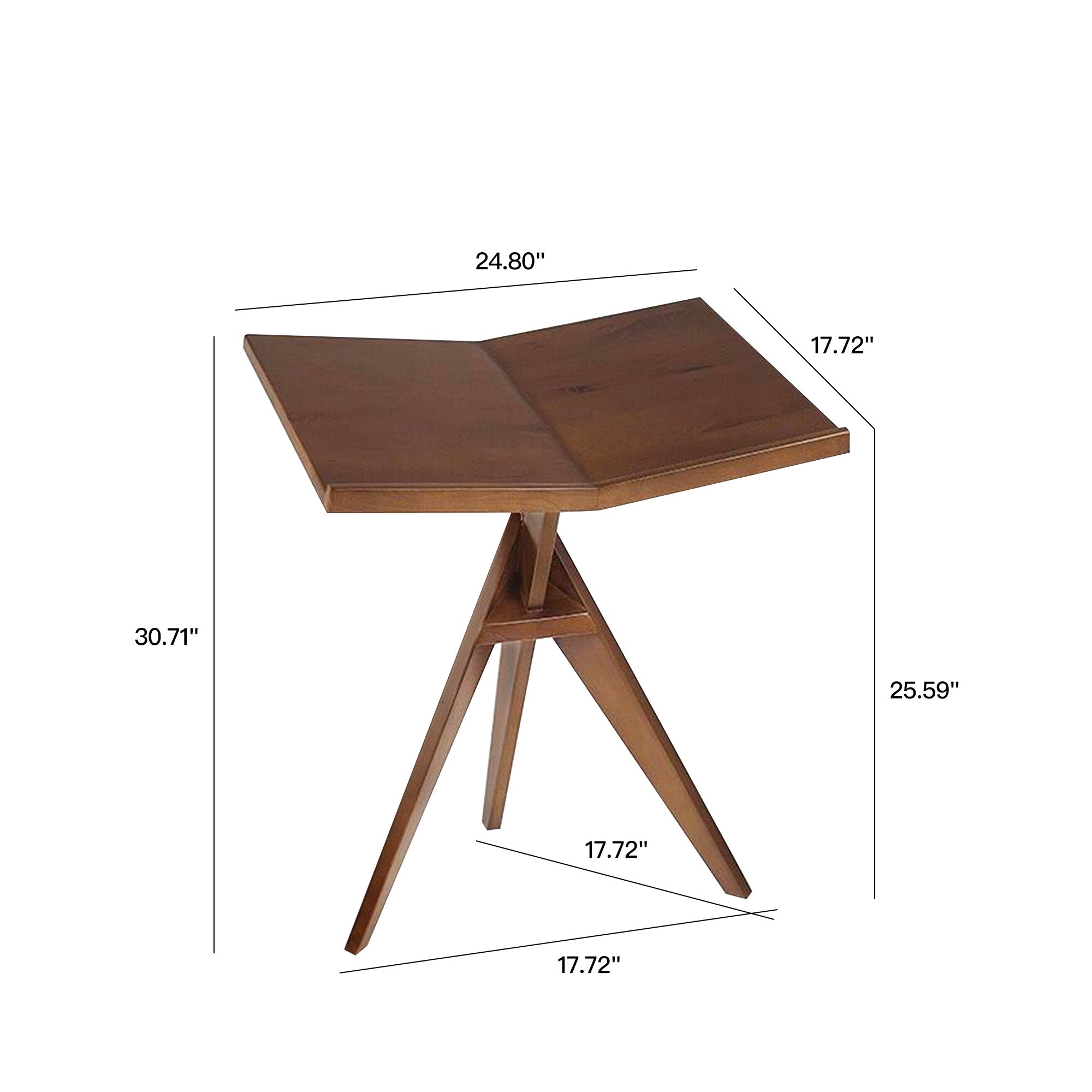 Add a touch of elegance with this side table. Featuring a rich rubberwood finish and a unique geometric base, it combines style with stability. The angled tabletop is perfect for holding books, drinks, or decor, making it ideal for a reading nook, living room, or bedroom. Its compact size and modern design make it a versatile addition to any space.