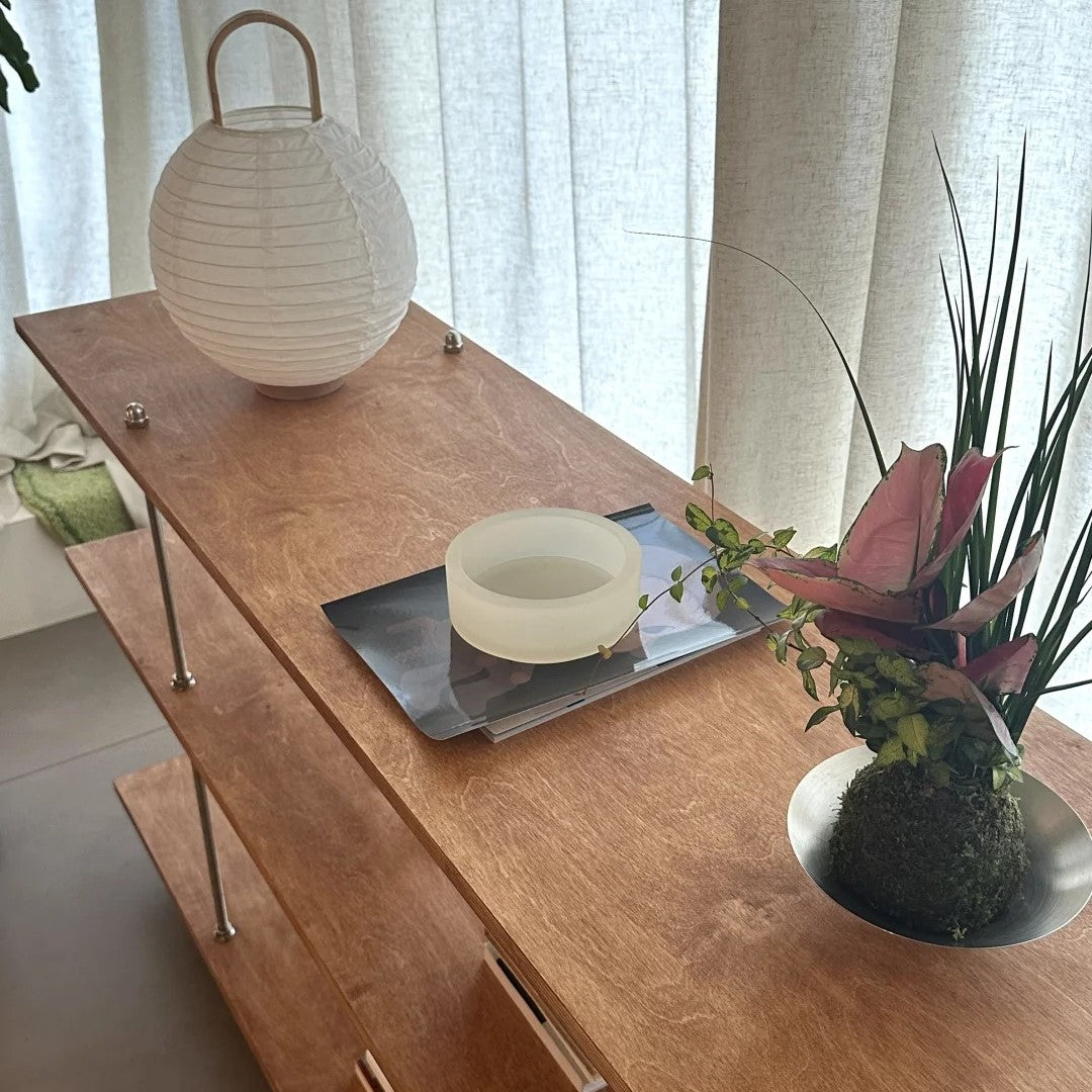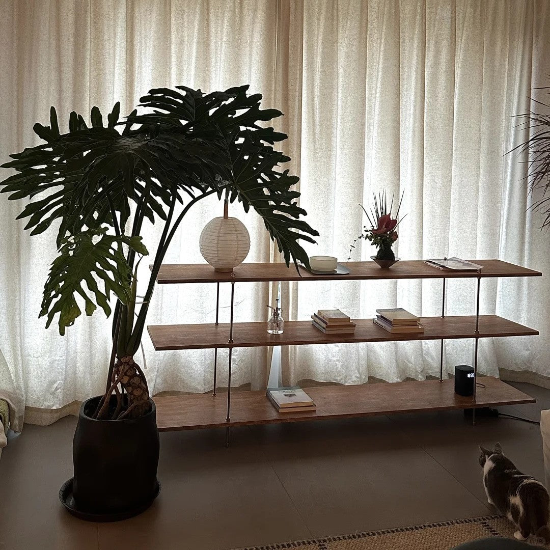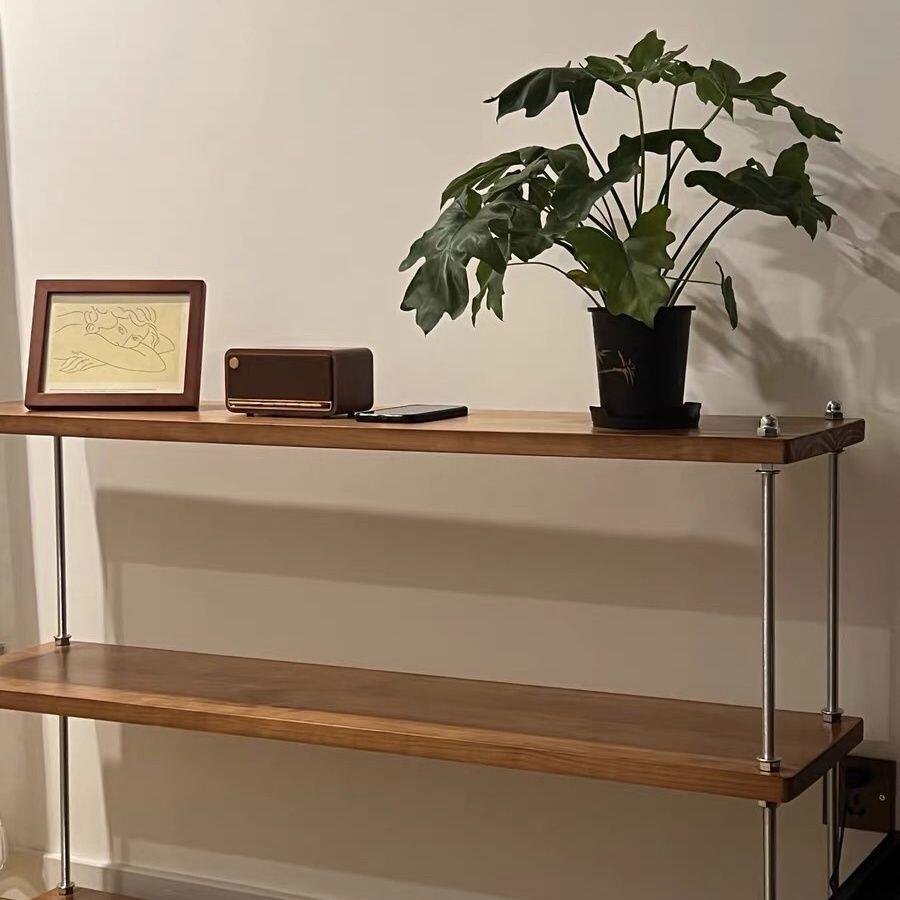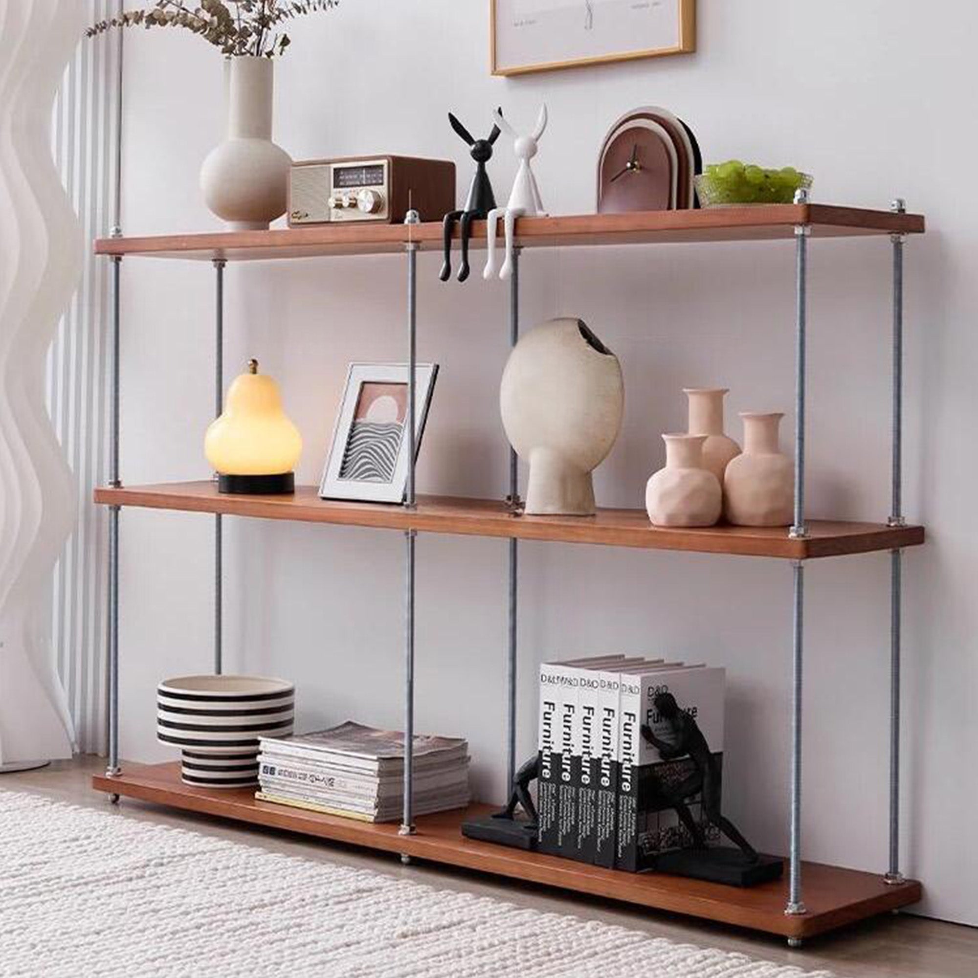 This minimalist display shelf combines functionality with aesthetic appeal, making it a versatile addition to your home. Crafted with warm wooden planks and supported by sleek metal rods, it offers a sturdy yet lightweight structure. The three-tier design provides ample space for showcasing decorative items, books, or everyday essentials. Its open-concept layout ensures easy access and enhances the sense of space, making it ideal for living rooms, study areas, or stylish entryways. Perfect for those who appreciate clean lines and contemporary design.
