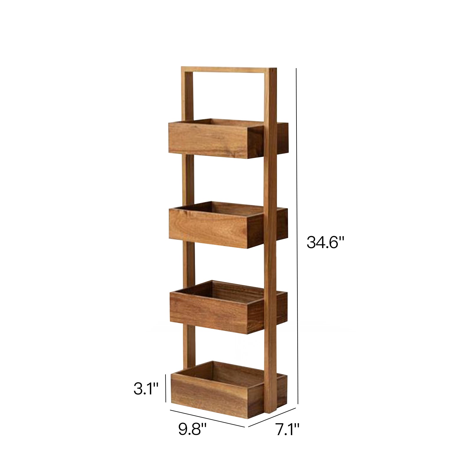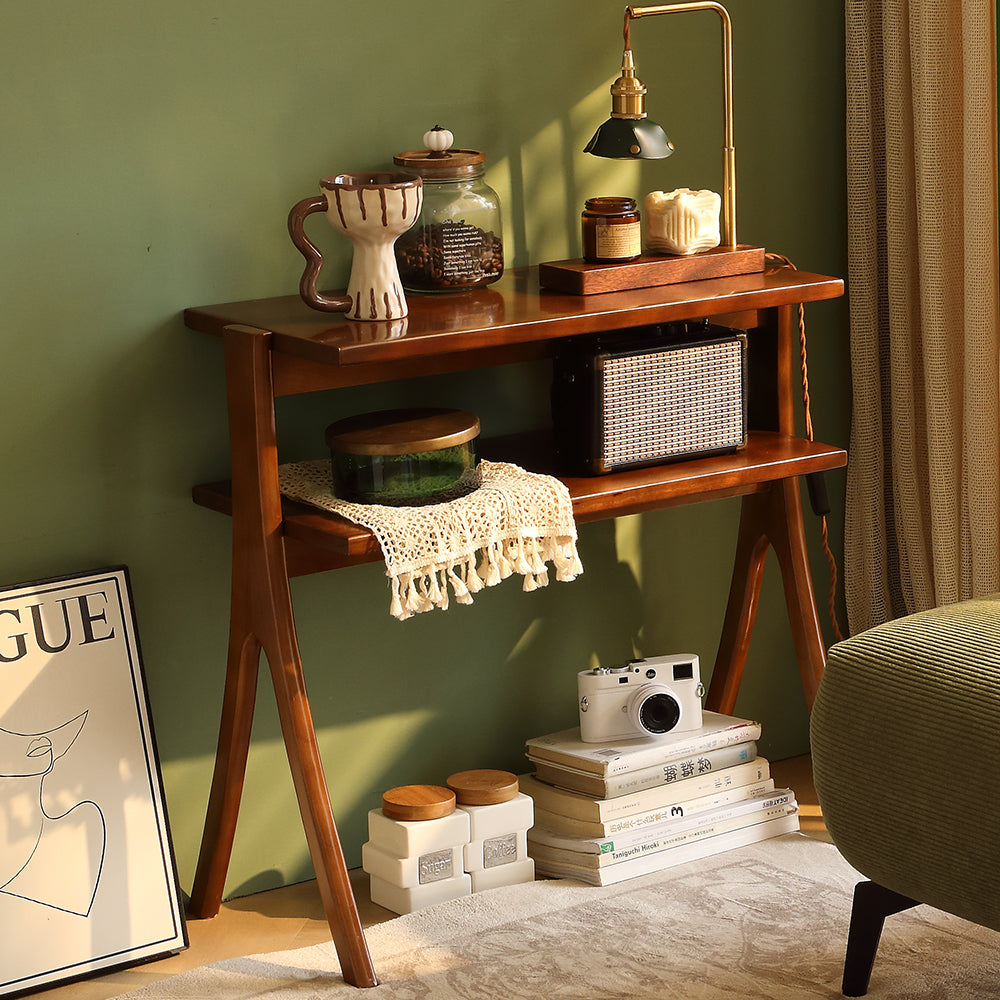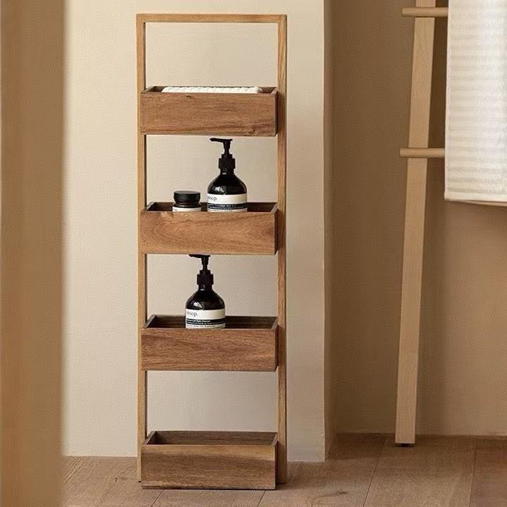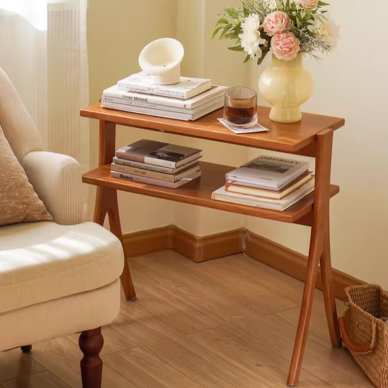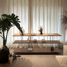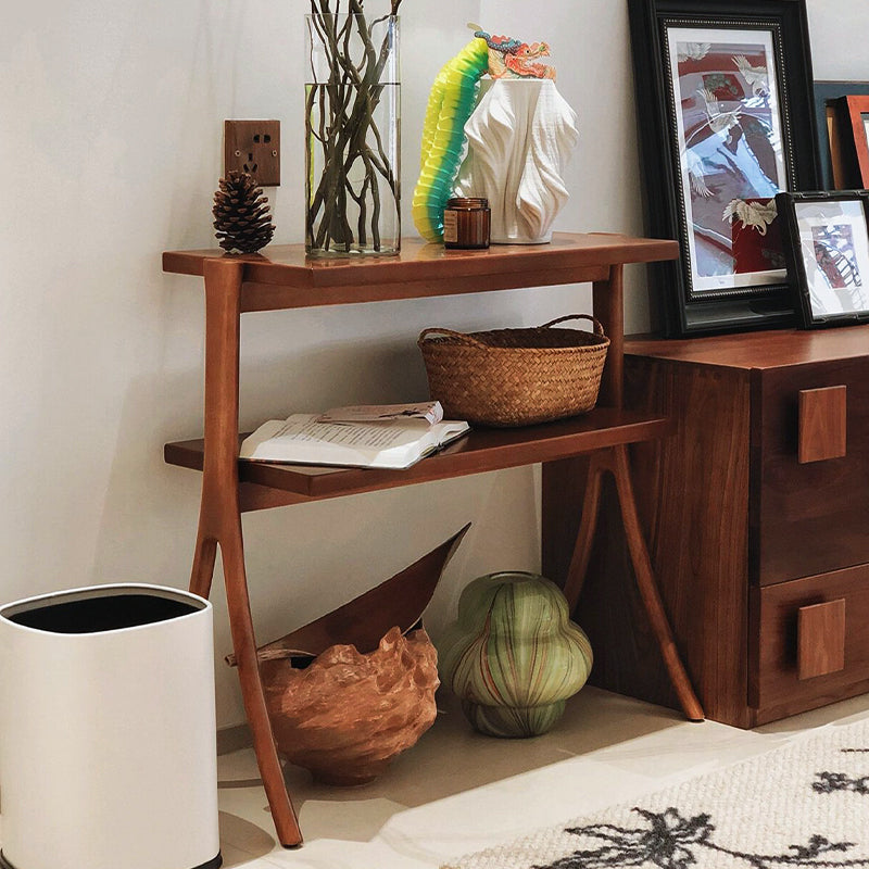 This minimalist display shelf combines functionality with aesthetic appeal, making it a versatile addition to your home. Crafted with warm wooden planks and supported by sleek metal rods, it offers a sturdy yet lightweight structure. The three-tier design provides ample space for showcasing decorative items, books, or everyday essentials. Its open-concept layout ensures easy access and enhances the sense of space, making it ideal for living rooms, study areas, or stylish entryways. Perfect for those who appreciate clean lines and contemporary design.