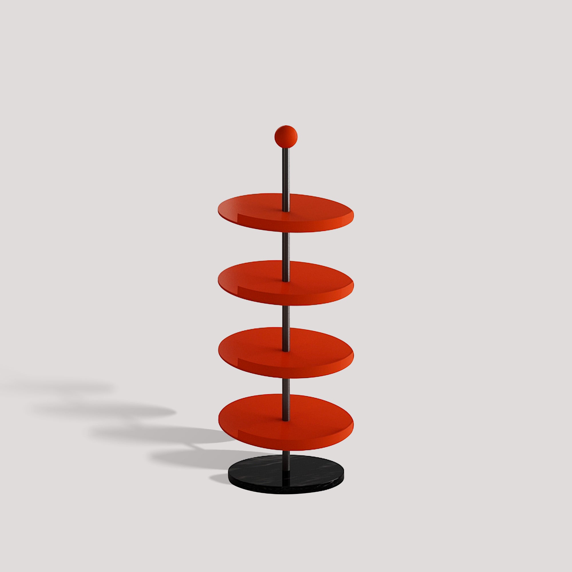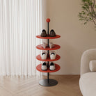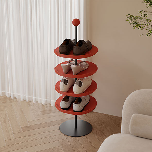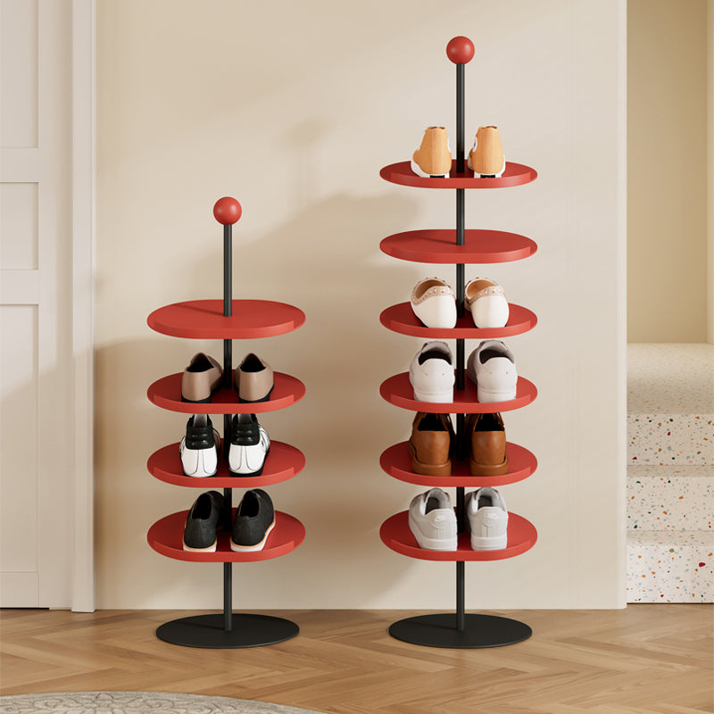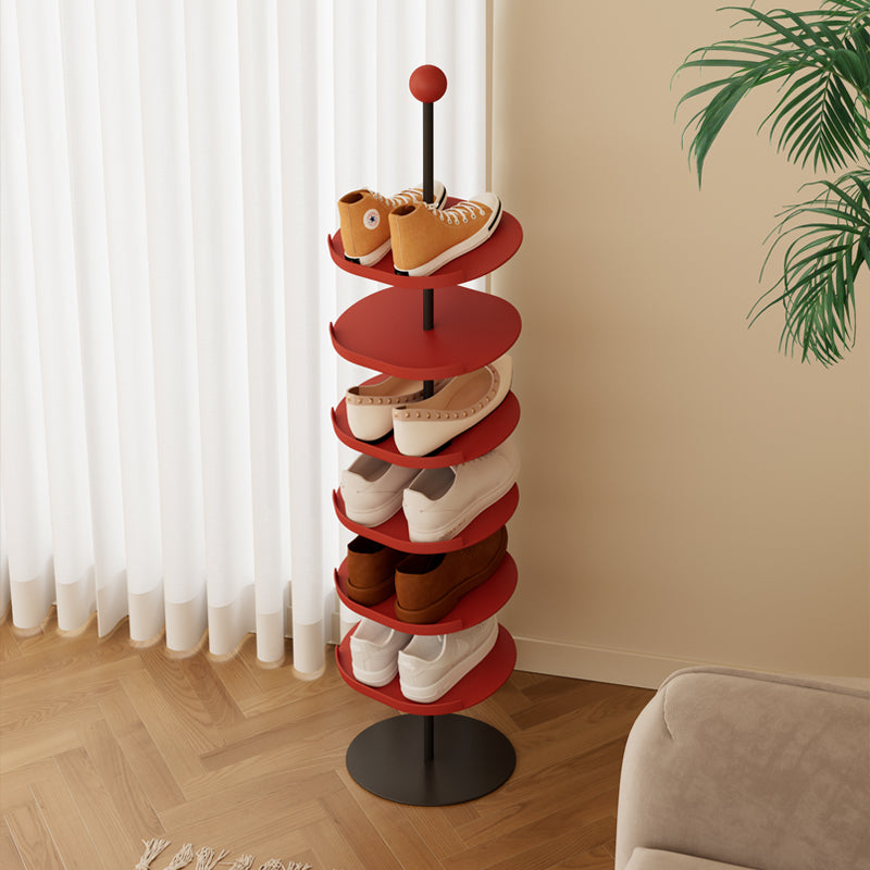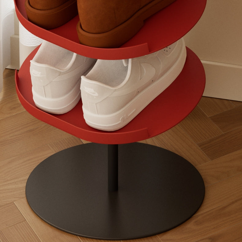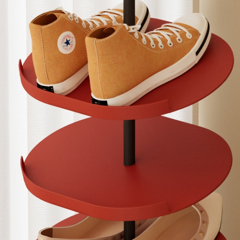 Add a stylish and functional touch to your entryway or closet with this modern shoe rack. Featuring a sleek red finish, the rack offers multiple circular tiers, making it easy to access your shoes. Its vertical design maximizes storage without taking up much space, accommodating a variety of shoe styles from heels to sneakers. The sturdy metal frame ensures stability, while the contemporary look adds a chic flair to any room. Perfect for organizing your footwear collection with elegance and ease.