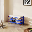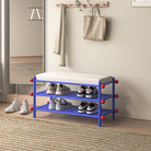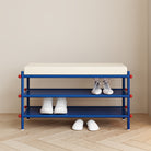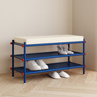 This stylish blue shoe storage bench stands out in any space, combining eye-catching design with practical function. The soft PU leather cushion provides a smooth, skin-friendly touch and is filled with high-density foam for quick rebound and long-lasting comfort. Supported by a sturdy metal frame, it offers both strength and stability. Its versatile design makes it perfect for entryways, bedrooms, or living rooms, serving as both a comfortable seat and a practical shoe bench.