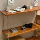 This sleek and stylish storage shelving features a three-tier open shelf design, providing ample space for organizing books, decor, and everyday essentials. Crafted from durable wood with a natural finish and supported by sturdy metal poles, it blends industrial charm with modern simplicity. Ideal for use in the living room, bedroom, or hallway, this versatile piece enhances both function and aesthetics. Its open design allows for easy access and a visually airy feel, making it a perfect addition to contemporary interiors.