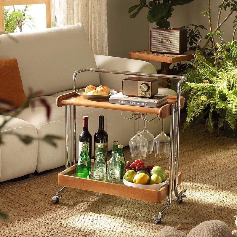 The natural wood grain, sturdy structure, and smooth mobility make it perfect for hosting drinks, serving treats, or simply elevating your home decor.